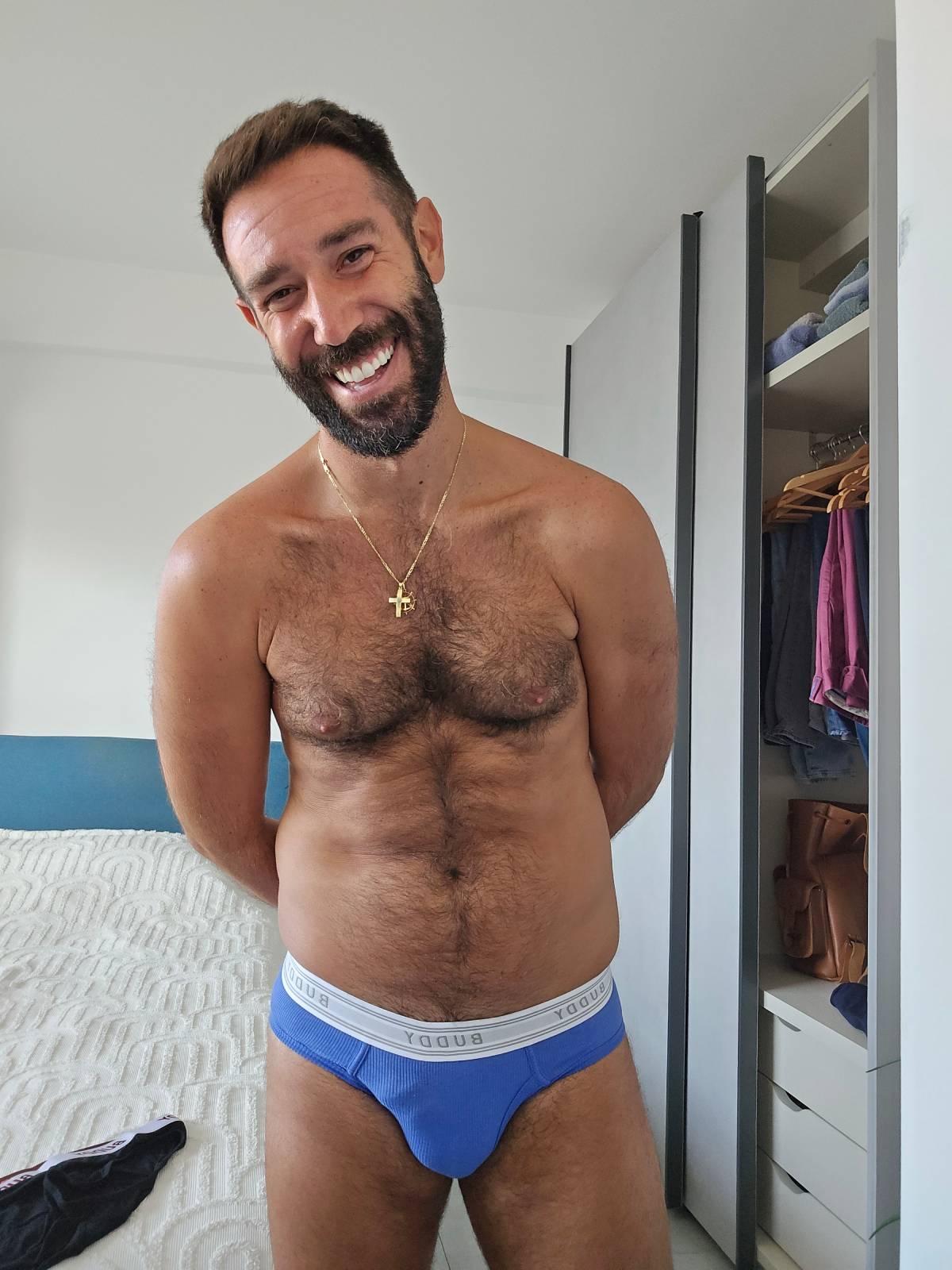 I was never the “Go outside shirtless” type, but now I walk around Athens with Biskotaki without a shirt on those hot days and don’t think anything of it. It’s helped my relationship with my body in unimaginable ways. Even posing for photos in my briefs was a huge step for me, and now it’s something so normal for me. You realize that you are desired and that you have come so far.